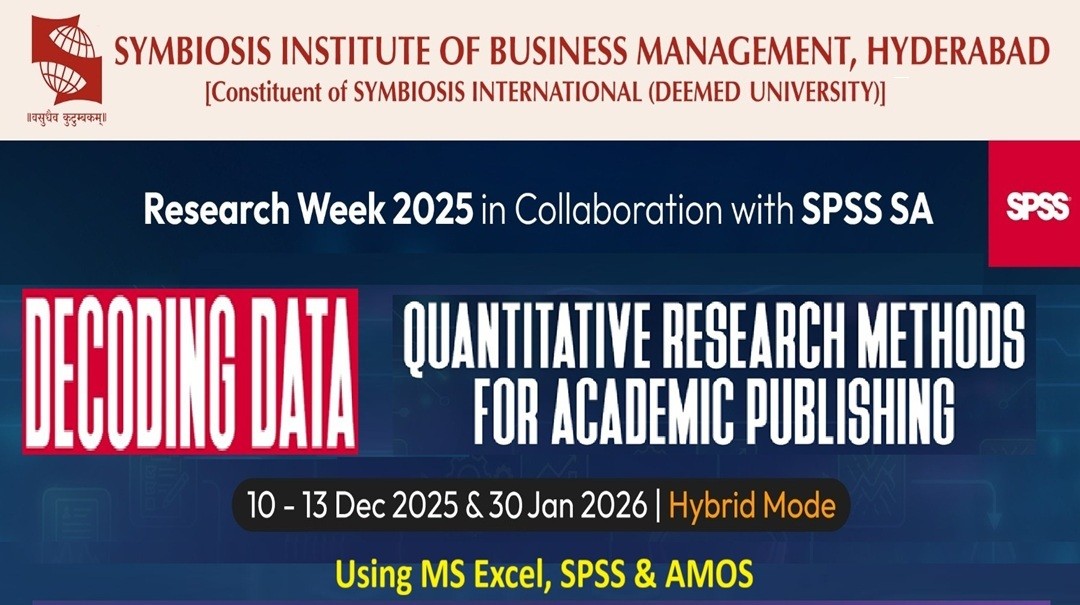In contemporary academic and professional environments, data-driven decision-making and empirical research are becoming essential competencies for scholars and practitioners alike. Recognizing the growing importance of methodological rigor and analytical proficiency, the Cell of Research (CoRe), SIBM Hyderabad, organized Research Week 2025 with the objective of strengthening quantitative research capabilities among young researchers.